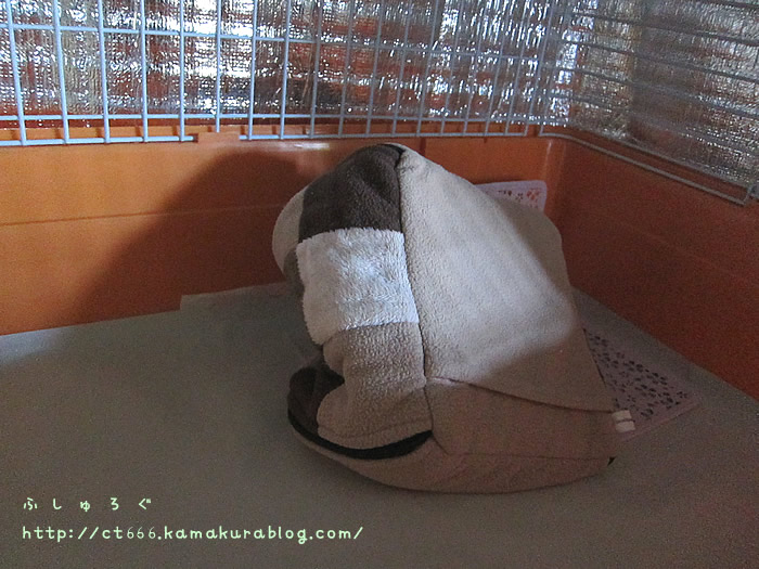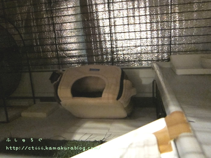 お風呂上がってきてケージ覗くと結局ロフト下で丸くなってた;