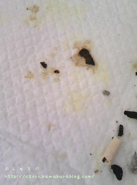 どんなものかは運がよければ見られるけども、出た瞬間からシミているものと思われる。