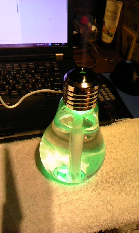 途中、先日買った電球加湿器を設置。