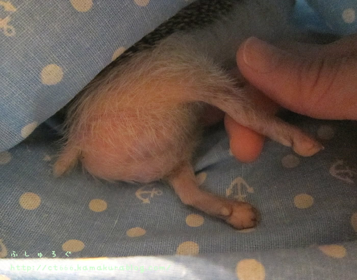 そんなわけで、こたさん今朝の針抜け、産毛以上針未満一本。